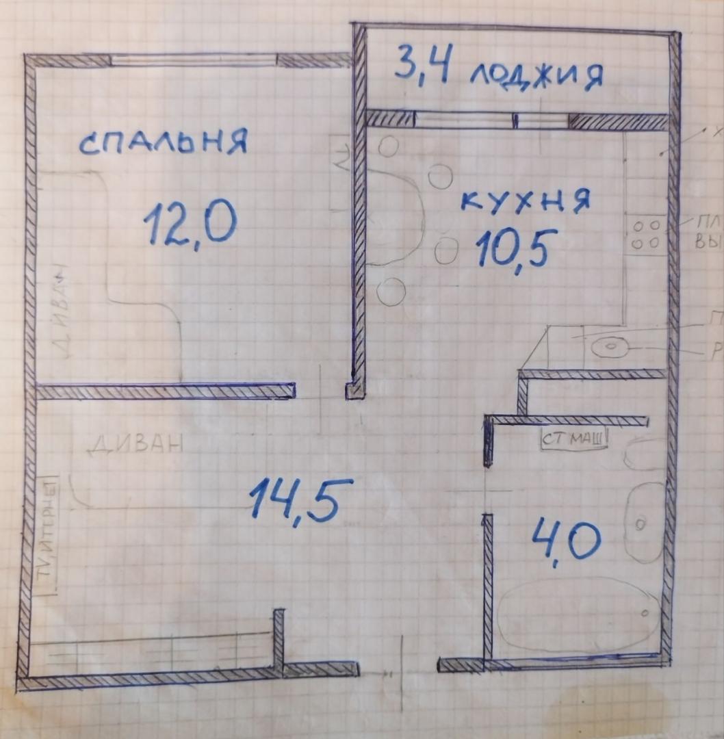 Общая площадь 40,8 м² ( по ДДУ 44,2м² с учётом лоджии)